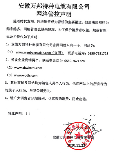 鄭重聲明:安徽萬邦特種電纜有限公司官方網站為:www_wanbangcable_com.gs-zhinan.com,除此之外無任何子網站或合作網站,其余均為假冒偽劣。電話:0550-7621728 13485756353 地 址:安徽省天長市滁州高新技術產業開發區經四路29號